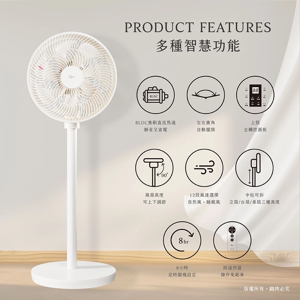 如果你追求極致的靜音與節能,信賴國際大廠的品質,這款頂規DC電扇是你的不二之選。 - 【DC扇CP值之王|⭐⭐⭐⭐⭐】 → 選 ROMEO 羅蜜歐 12吋DC扇